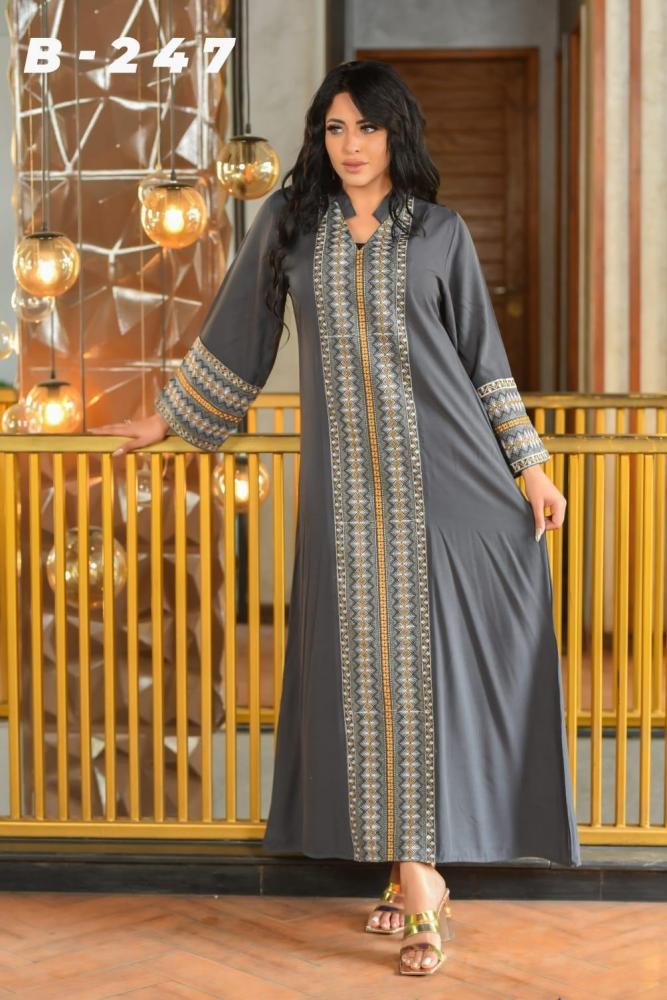 عباية B-247 الكويتيّة تجمع بين الفخامة والرقي بتصميمها الكلاسيكي الأنيق. بتفاصيلها المطرّزة بخيوط فاخرة على طول الواجهة والأكمام، تمنحك حضورًا راقيًا يعكس أنوثتك وذوقك المميّز في كل مناسبة.