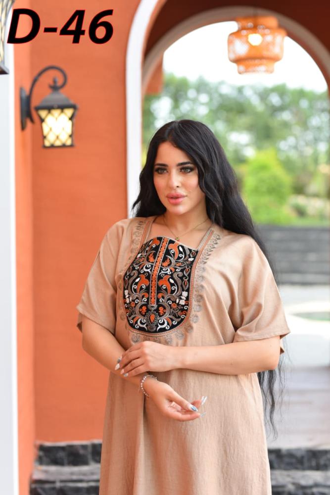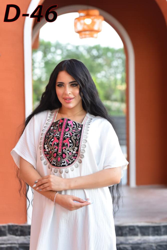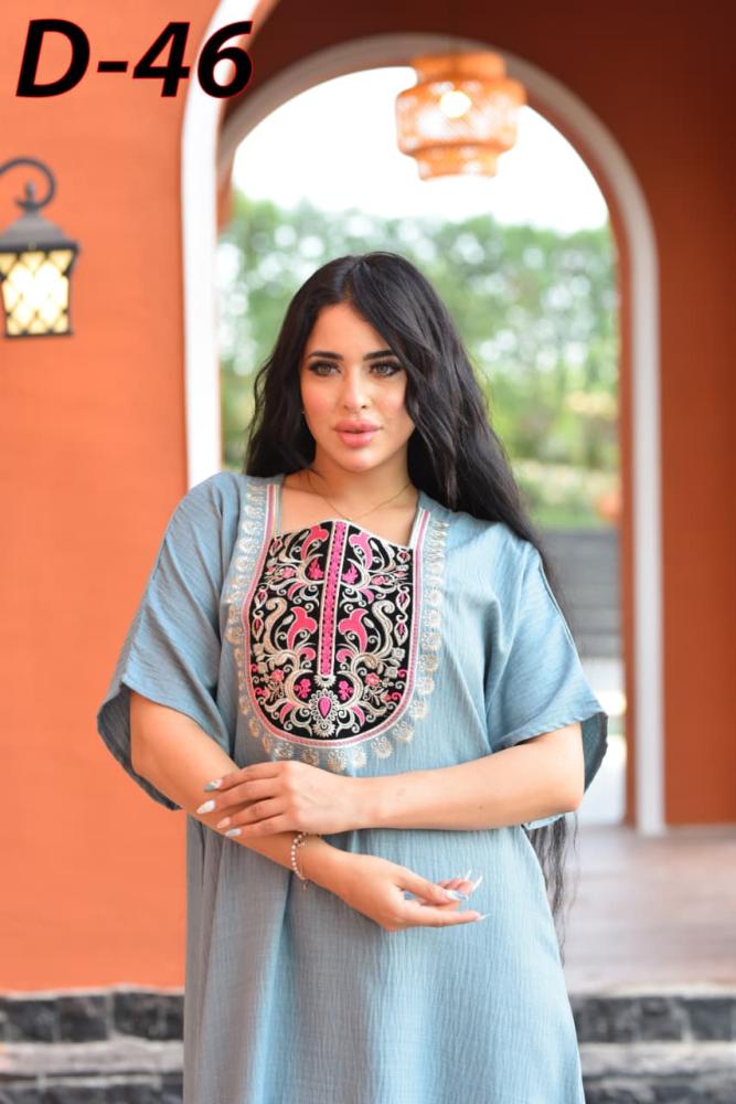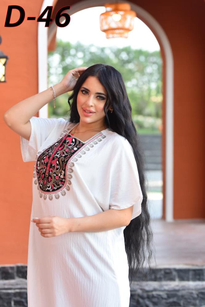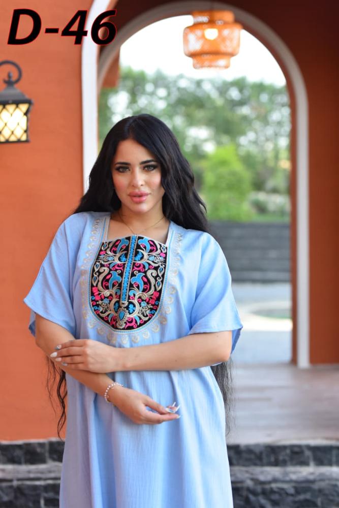 تألّقي بإطلالة ناعمة ومريحة مع عباية D-46 الكويتيّة بكم قصير، المصمّمة لتمنحك لمسة من الأناقة العصرية والراحة اليومية. مستوحاة من الذوق الخليجي الراقي ومزينة بتطريز أمامي فاخر يضيف لمسة فنية مميزة لإطلالتك.